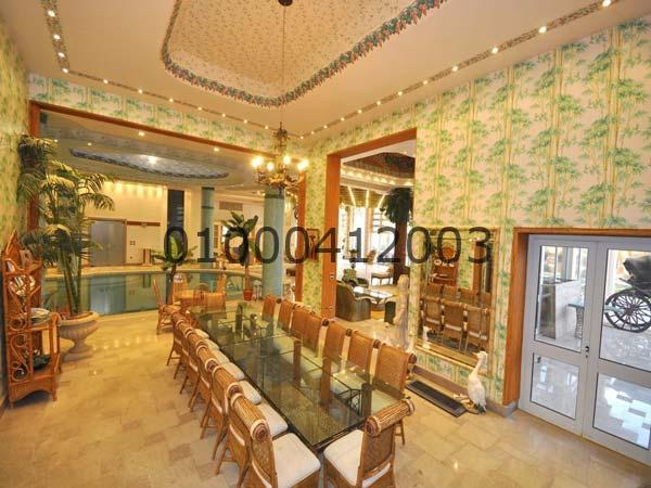 There is a main suite consisting of a large bedroom, a dressing room, and 2 reception bathrooms on the swimming pool with office, and there is a children's pool and a building of about 120 m to serve the swimming pools and under the swimming pools, a car garage with a capacity of about 40 to 50 cars, and there are 2 elevators of the buildings and one from the ground floor down to the swimming pool The winter and the first floor contains 6 bedroom suites with an office to serve the suites, each room has a separate bathroom, and the total number of bedrooms is 17 bedrooms other than the main suite and there is a bathroom. Winter swimming a kitchen and a rural area with waterfalls and an elevator that serves the kitchen for the ground floor, there is a family trip and salons, and there is a garden with an office and a grill to serve the party area in a fruitful garden. The palace has a central air-conditioner, has a kettle, and has many capabilities, and inside a very popular compound that includes a group of elites to ensure calm and an elite of celebrities.