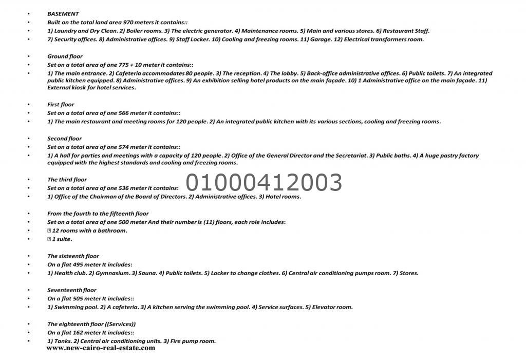 | Description: | For sale a hotel in Cairo directly on the Nile Demand: $20 million Type: Hotel for sale. Location: Cairo - Egypt. Land area: 970 m². Building area: 10100 square meters. Roles: 17 roles. Health club: 200 square meters. Meeting room: 200 square meters. Café shop: 120 square meters. The main restaurant: 200 square meters + ballroom. Excellence: a very excellent location in Cairo Receipt: immediate receipt Finishing: Super Lux Demand: $20 million The area: directly on the Nile Corniche and the main street, a residential area with complete facilities and services. Other options: ★ For sale lands for hotel tourism allotment ★ For sale hotel or tourist village ★ A commercial mall, malls and administrative headquarters are available for sale or rent. ★ Available commercial or administrative shops for rent or sale. ★ Malls and headquarters are available for sale or administrative rent. ★ Malls and administrative headquarters are available for sale or rent outside or inside compounds. ★ Available shops and malls for sale or rent suitable as an administrative headquarters. ★ A mall is available for sale or rent in all areas of New Cairo and the New Administrative Capital. M: Samir Abdel Fattah |