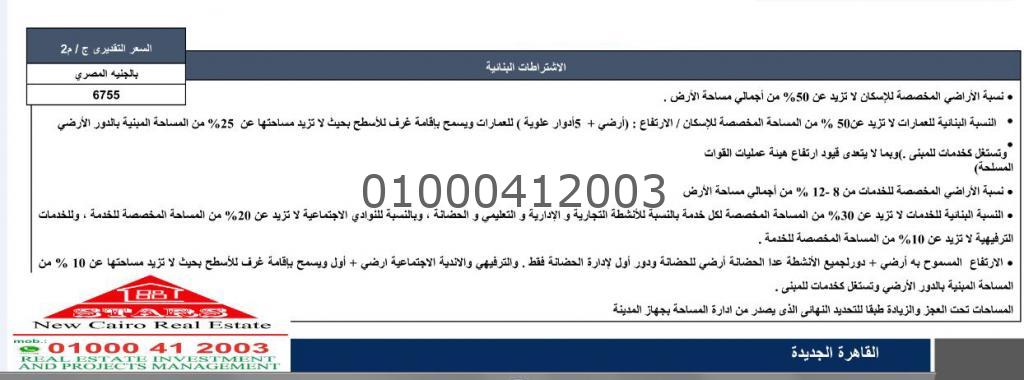 المنطقـــة : شارع التسعين الرئيسي وبجوار الهايدبارك والجامعة الامريكية منطقة سكنية كاملة المرافق والخدمات . خيــــارات أخرى : ★ مطلوب ولدينا أراضى فدادين للبيع أو مشاركة بالقاهرة الجديدة . ★ مطلوب ولدينا أراضى فدادين للبيع أو مشاركة بالعاصمة الإدارية . ★ مطلوب ولدينا أراضى للبيع أو مشاركة . ★ مطلوب ولدينا أراضى للبيع فدادين . ★ مطلوب ولدينا أراضى للبيع تجارى – إدارى – سكنى. ★ مطلوب ولدينا أراضى خدمى – سياحى فندقى ترفيهى. ★ مطلوب ولدينا أراضى أمتداد النرجس . ★ مطلوب ولدينا أراضى بيت الوطن . ★ مطلوب ولدينا أراضى شمال الرحاب . ★ مطلوب ولدينا أراضى للبيع بجميع مناطق التجمع . |